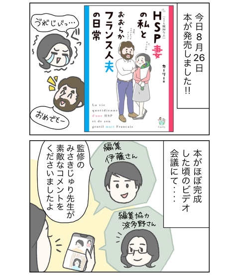 祝!初の書籍発売 2021年08月26日 今回はHSP要素も入った本なので、HSPの箇所に関して専門家のみさきじゅり先生(Twitterはこちら⭐︎)に監修していただきました!そんな先生からのコメントとは…みさき先生からも、編集者の波多野さんからも、嬉しいコメントを…!😭嬉しくて思い出しては枕を濡らす日もありま ... 続きを読む
