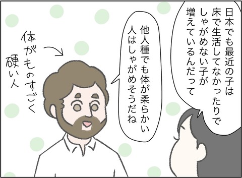 アジア人独特の?座り方 2022年03月23日 こんにちは!30代カーリーのブログです。同い年のフランス人、ジャンさんと日本で二人暮らしをしています。初めての方はコチラをどうぞ☆→自己紹介アジア人にしゃがめる人が多い理由…いろいろググってみたのですが、たくさんの説があって「これ!」という理由が分かりませ ... 続きを読む