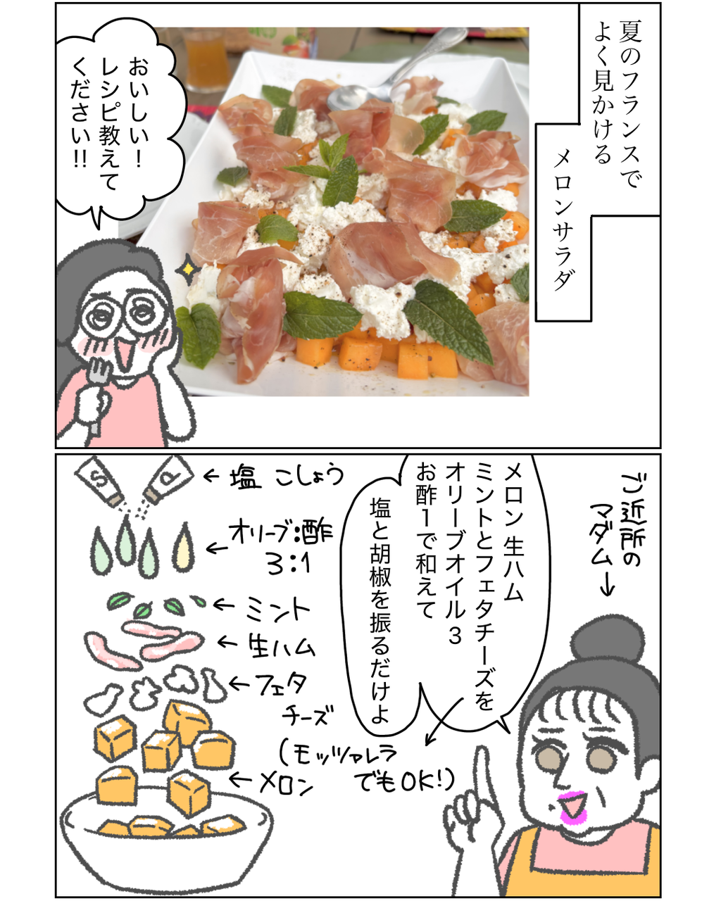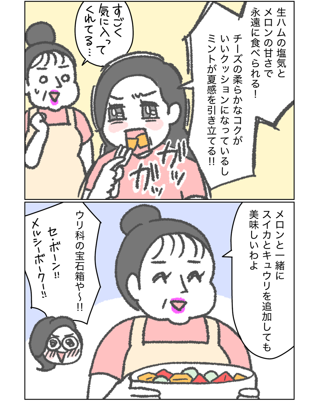 メロン、キュウリ、スイカのウリ科の宝石箱サラダには、